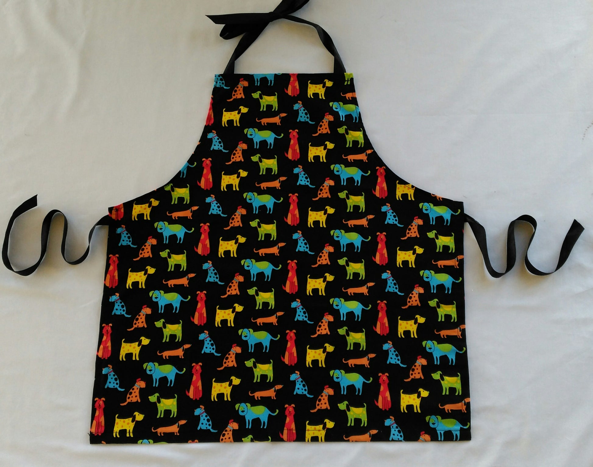 Children’s apron measurement is approx. 48cm high x 50 cm wide the top bib part is 20 cm. Tying strap at the top and around the waist to adjust for a correct fit for children up to approx 8 yrs old.